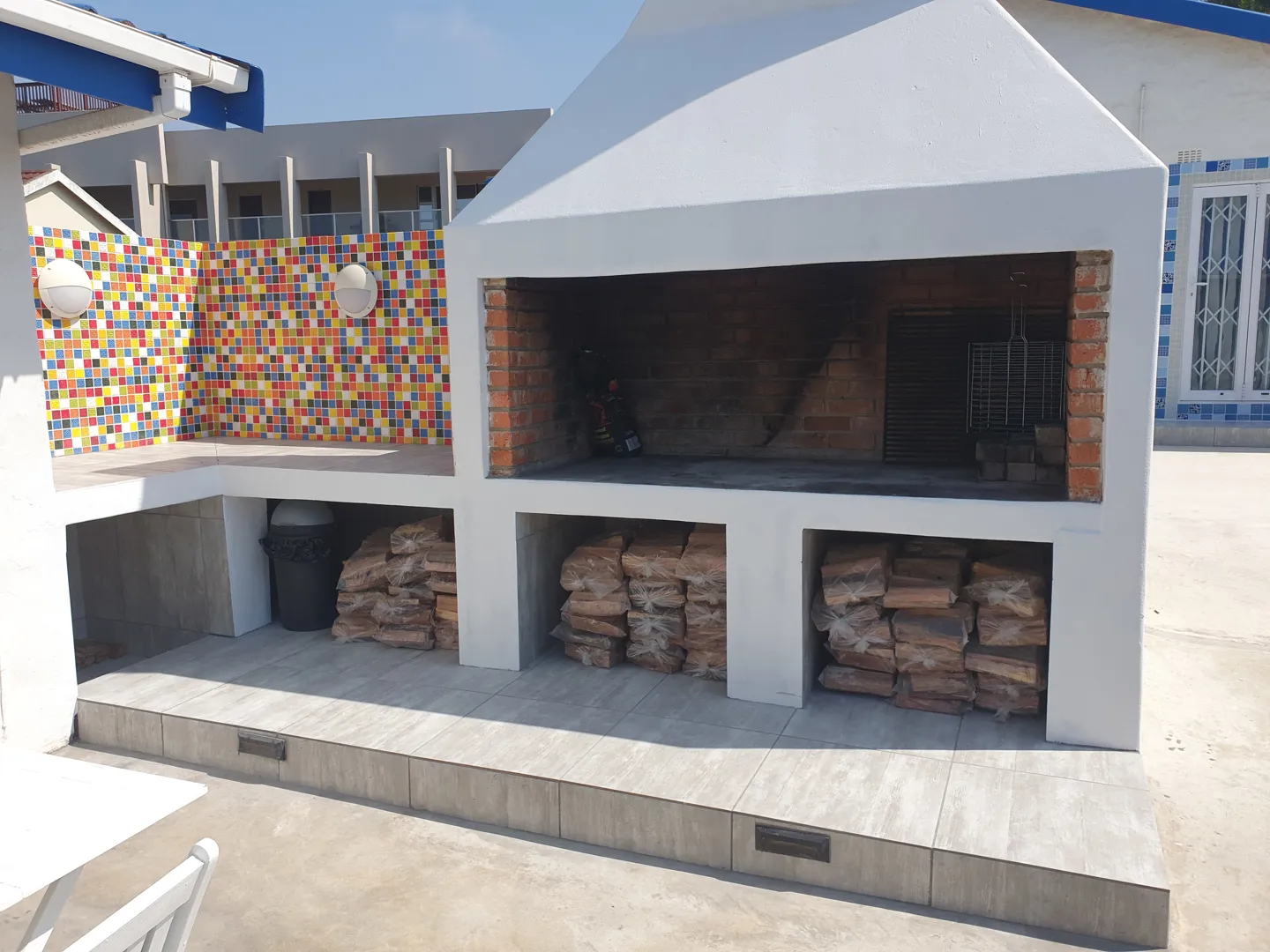 Enjoy shaded outdoor spaces with seating, perfect for relaxing, dining, or taking in the beach views.